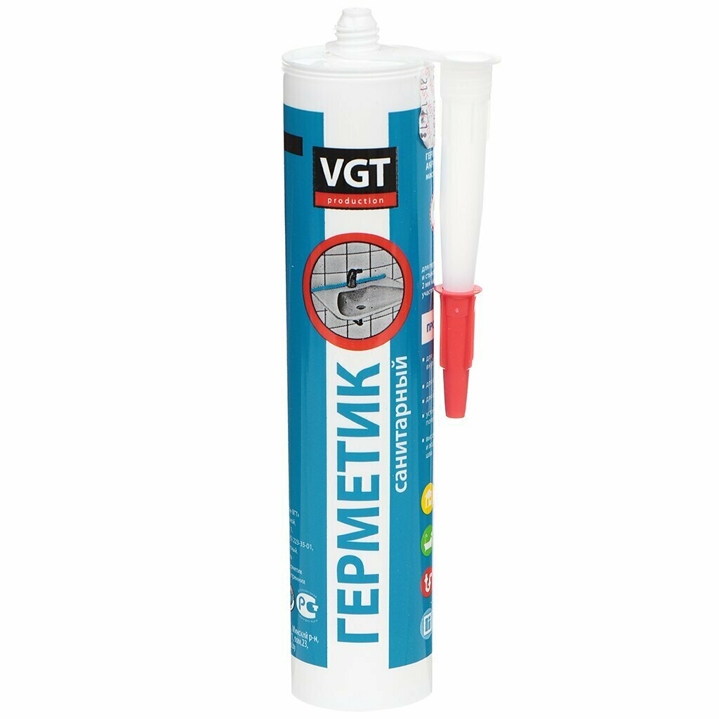 VGT герметик акриловый санитарный для внутренних и наружных работ, картридж, бесцветный (280мл)