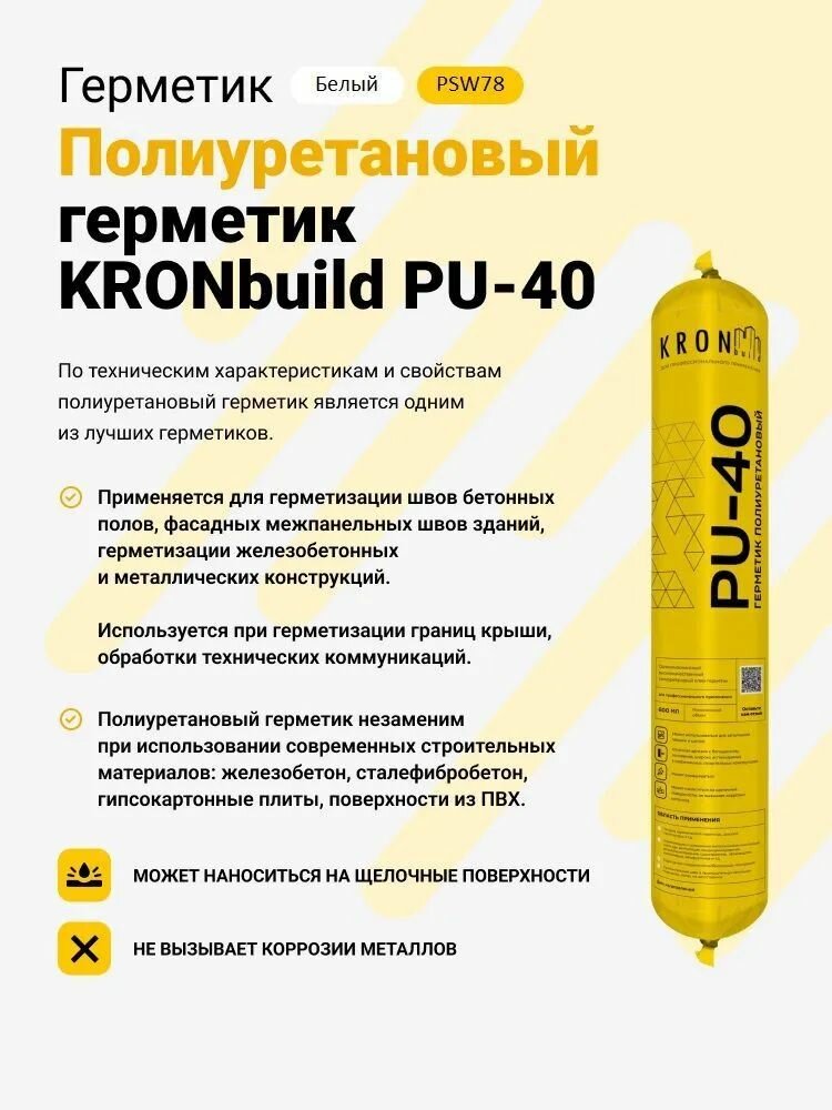 Герметик Kronbuild PU-40, полиуретановый, 600мл, белый, для домостроения, ремонта дорог, машиностроения