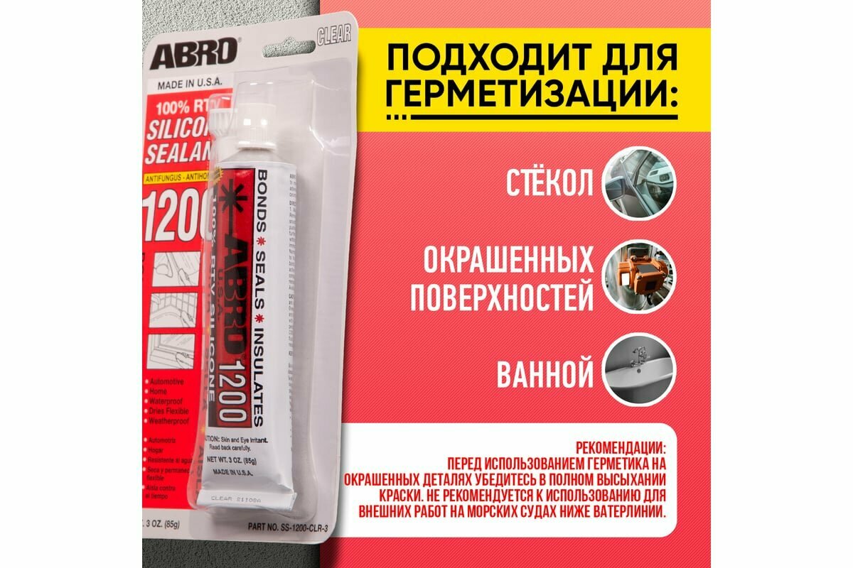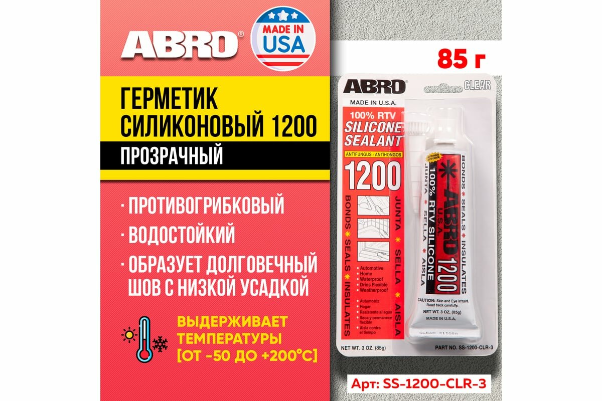 Герметик силиконовый ABRO (прозрачный) 85 гр SS-1200-CLR-3 интересное: