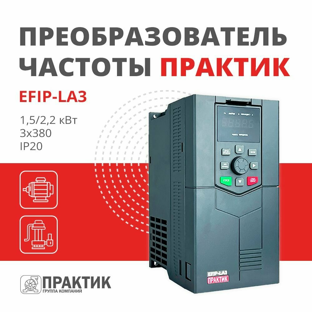 Частотный преобразователь 1,5/2,2 кВт 3х380 Практик EFIP-LA3-1R5G/2R2P-4T интересное: