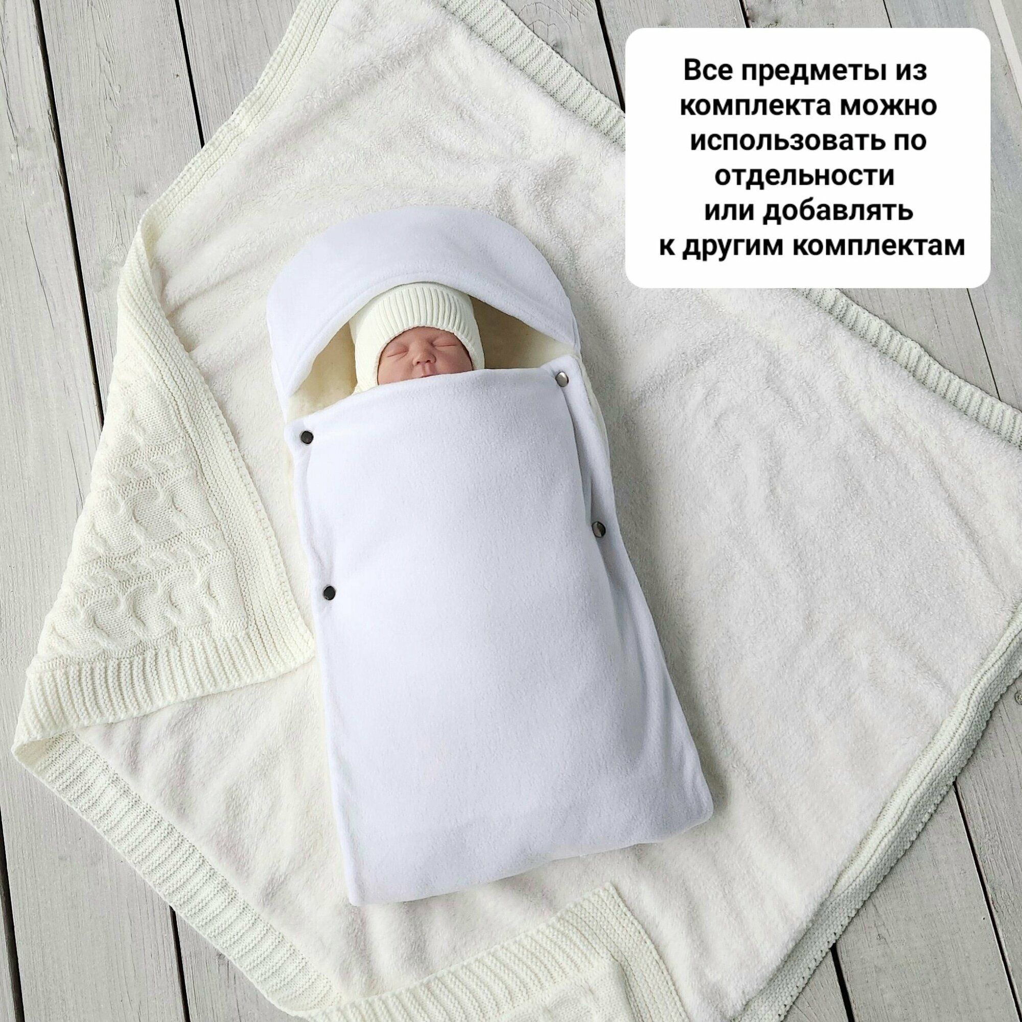 Комплект на выписку из роддома, 7 предметов, белый-молоко, размер 56 интересное: