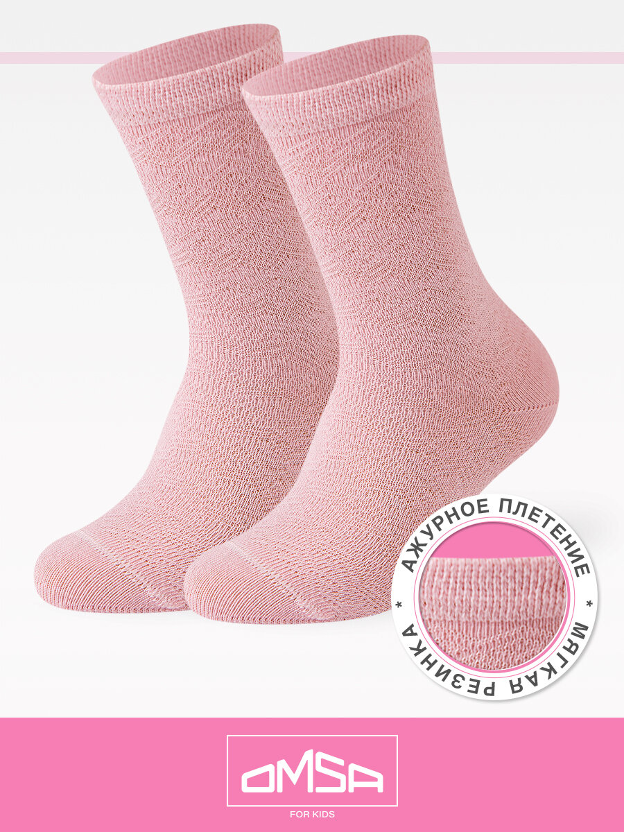 Носки детские OMSA kids Calzino 22A02, для девочки, высокие, ажурные, цветные, хлопок, набор 5 пар, цвет Rosa Chiaro , размер 27/30