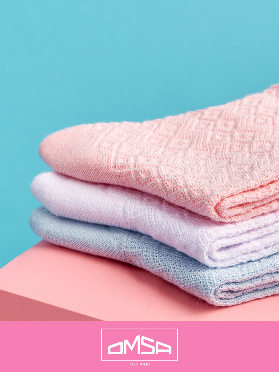 Носки детские OMSA kids Calzino 22A02, для девочки, высокие, ажурные, цветные, хлопок, набор 5 пар, цвет Bianco, размер 23/26