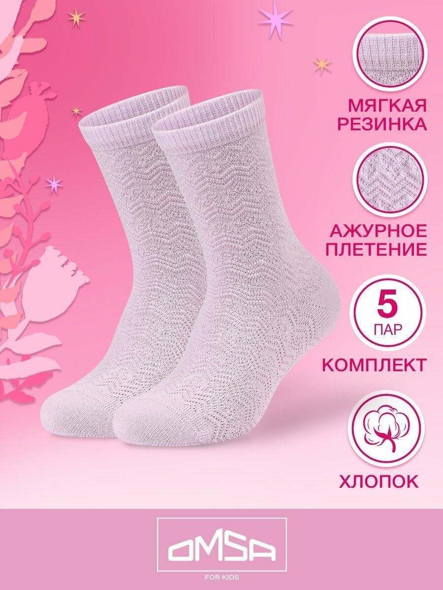 Носки детские OMSA kids Calzino 22A02, для девочки, высокие, ажурные, цветные, хлопок, набор 5 пар, цвет Lilla, размер 23/26