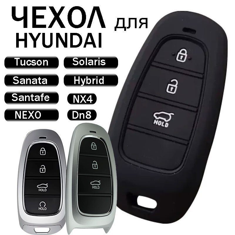 Силиконовый чехол для ключа Hyundai Tucson Solaris Sonata Hybrid NEXO NX4 Santafe Dn8 (Хендай санта фе) интересное: