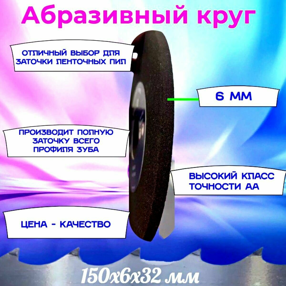Абразивный заточной круг 150х6х32 Grand (Бакелит) для заточки ленточных пил (для пилорамы) в комплекте 1 шт интересное: