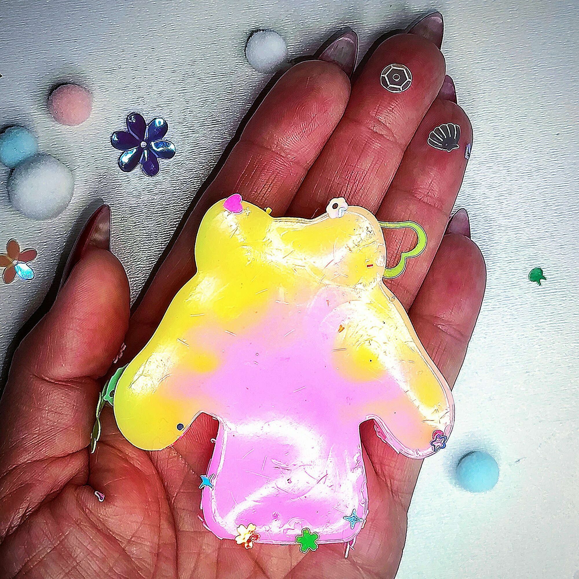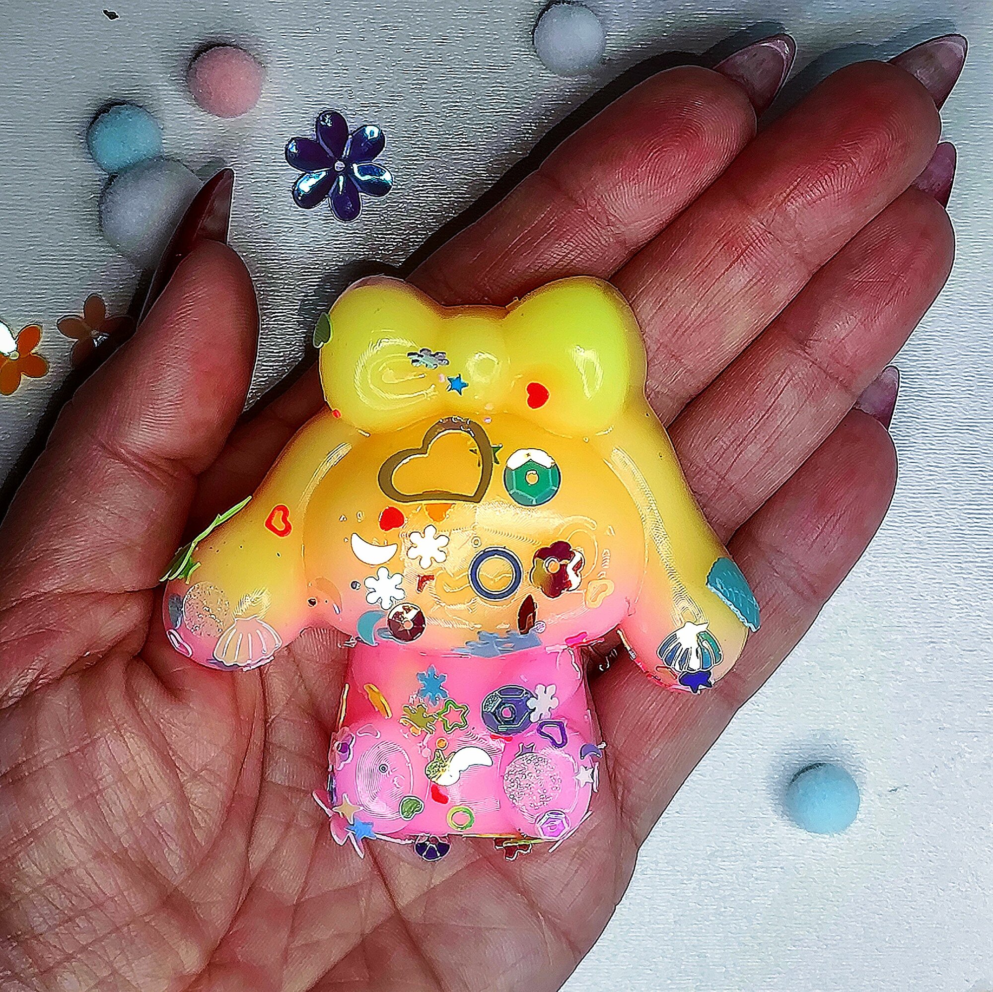 Мялка-антистресс "Хэллоу Китти одноушко" розово-желтая с наполнителем