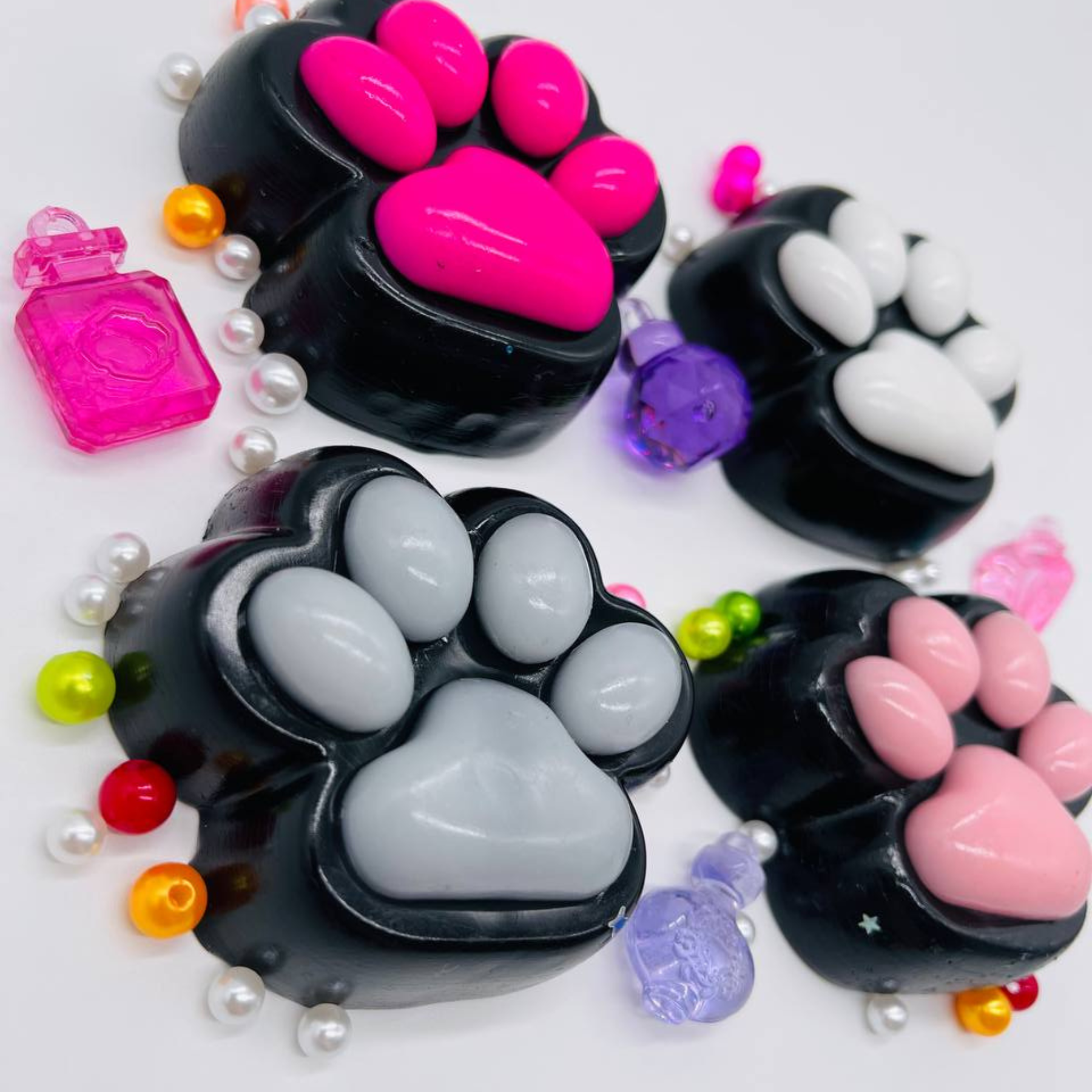 Игрушка антистресс для рук сквиш лапка котика прозрачный набор из 3 штук