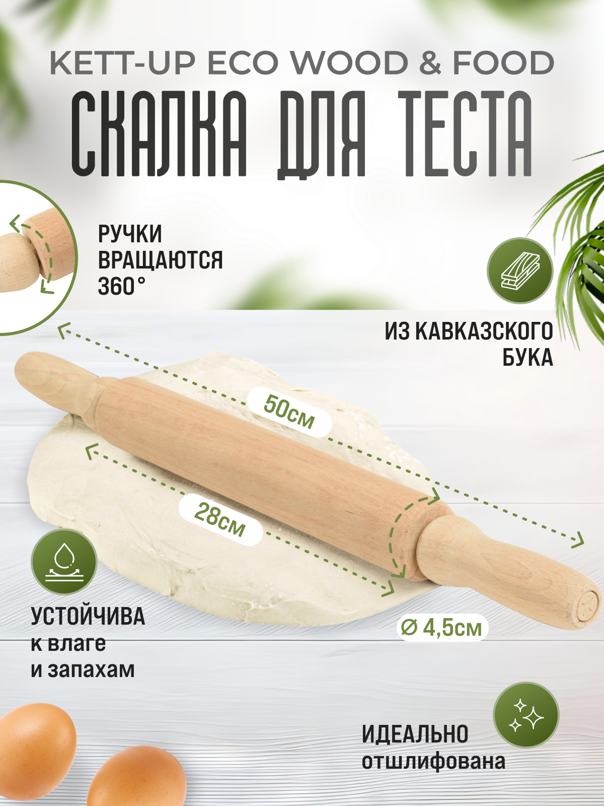 Скалка деревянная KETT-UP ECO WOOD & FOOD с вращающимися ручками интересное: