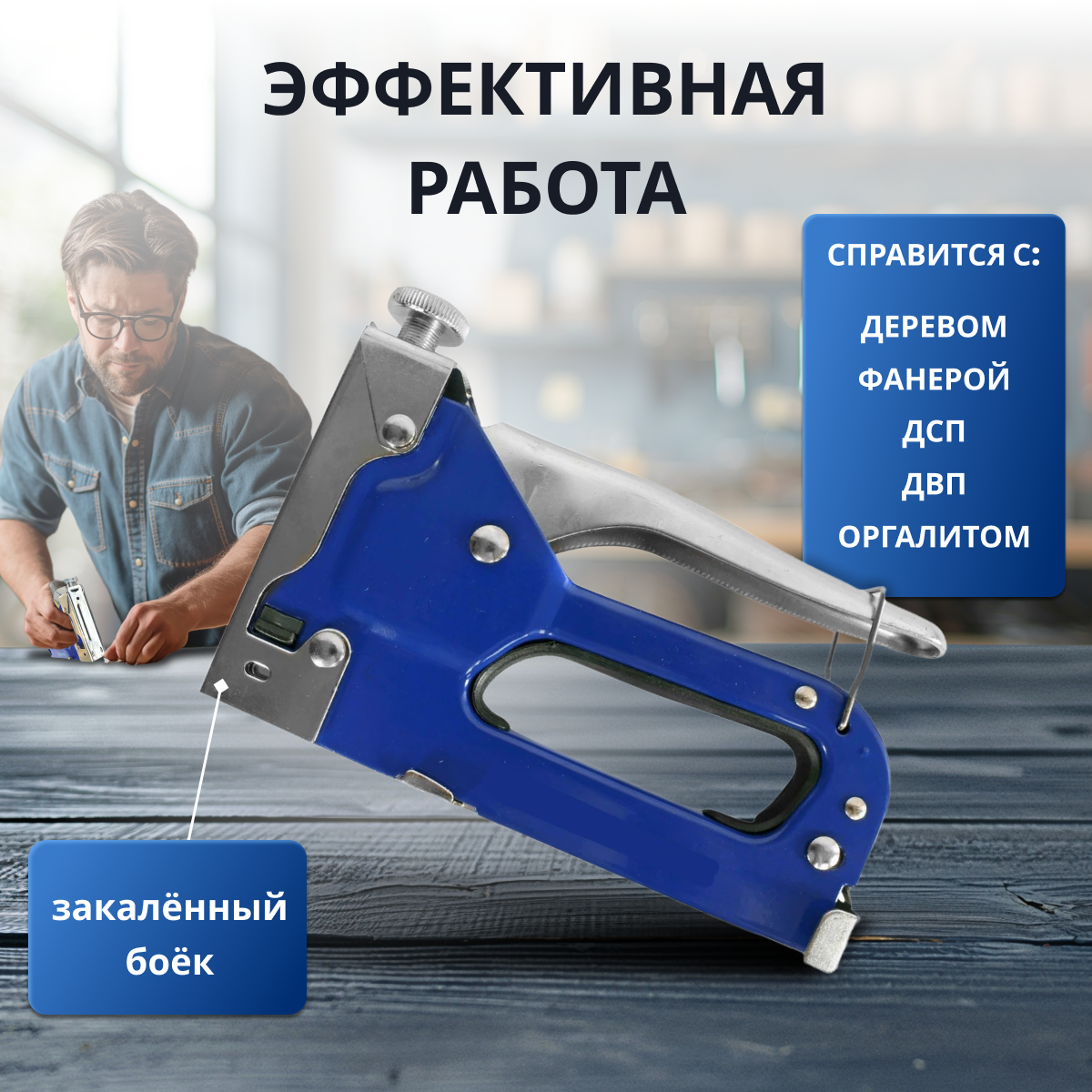 Степлер строительный мебельный металлический регулируемый со сменными скобами, тип скоб 53, 4-14 мм интересное: