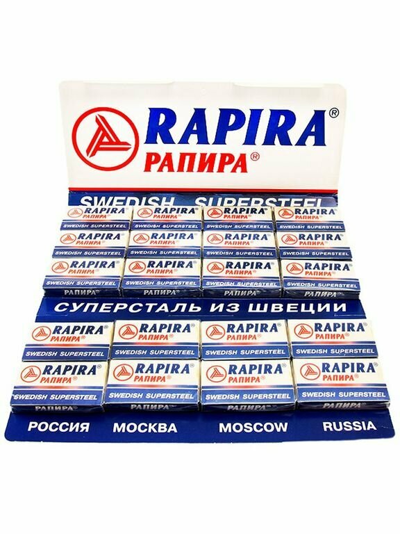 Лезвия RAPIRA SWEDISH SUPERSTEEL (Шведская Суперсталь), 20 пачек по 5 лезвий (100 лезвий), двусторонние классические для Т-образного станка интересное: