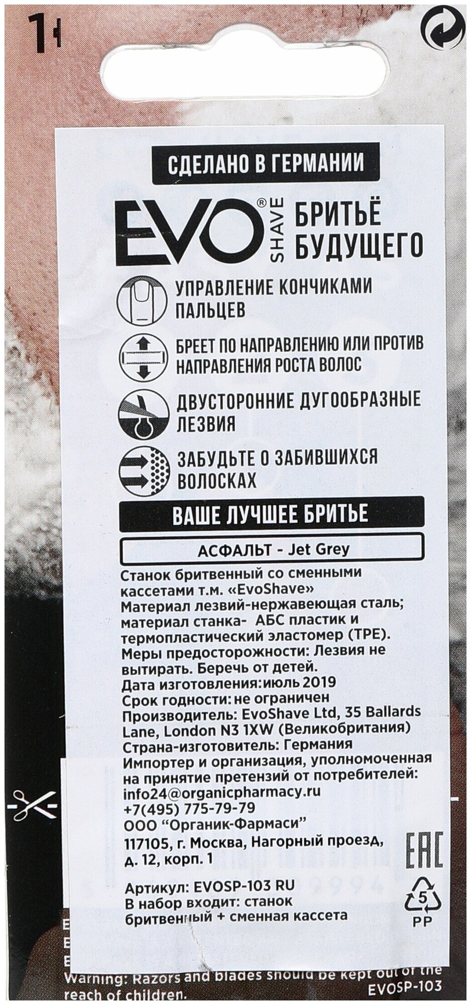 Купить EVOSHAVE Безопасная Многоразовая "бритва + кассета" (серый асфальт) N1 Инновация безопасного бритья