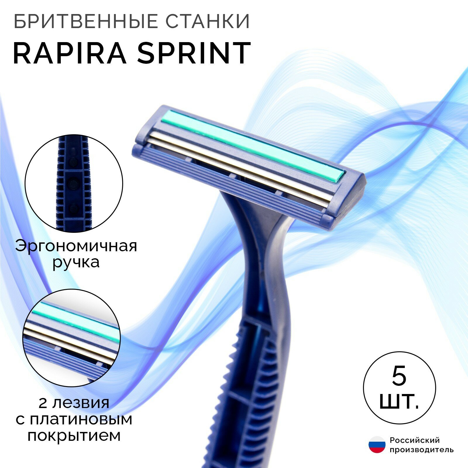Станок бритвенный одноразовый Rapira Sprint plus, со смазывающей полоской с алоэ, 5 штук / бритва одноразовая интересное: