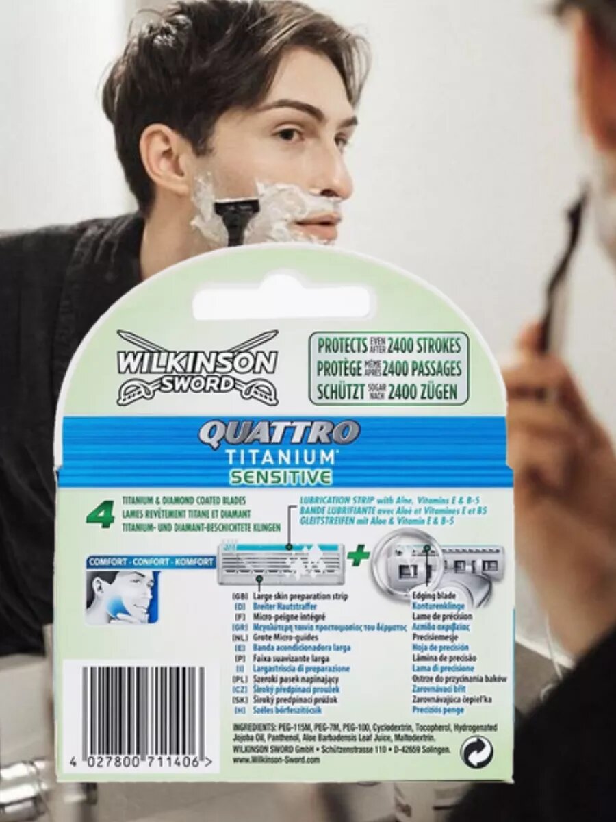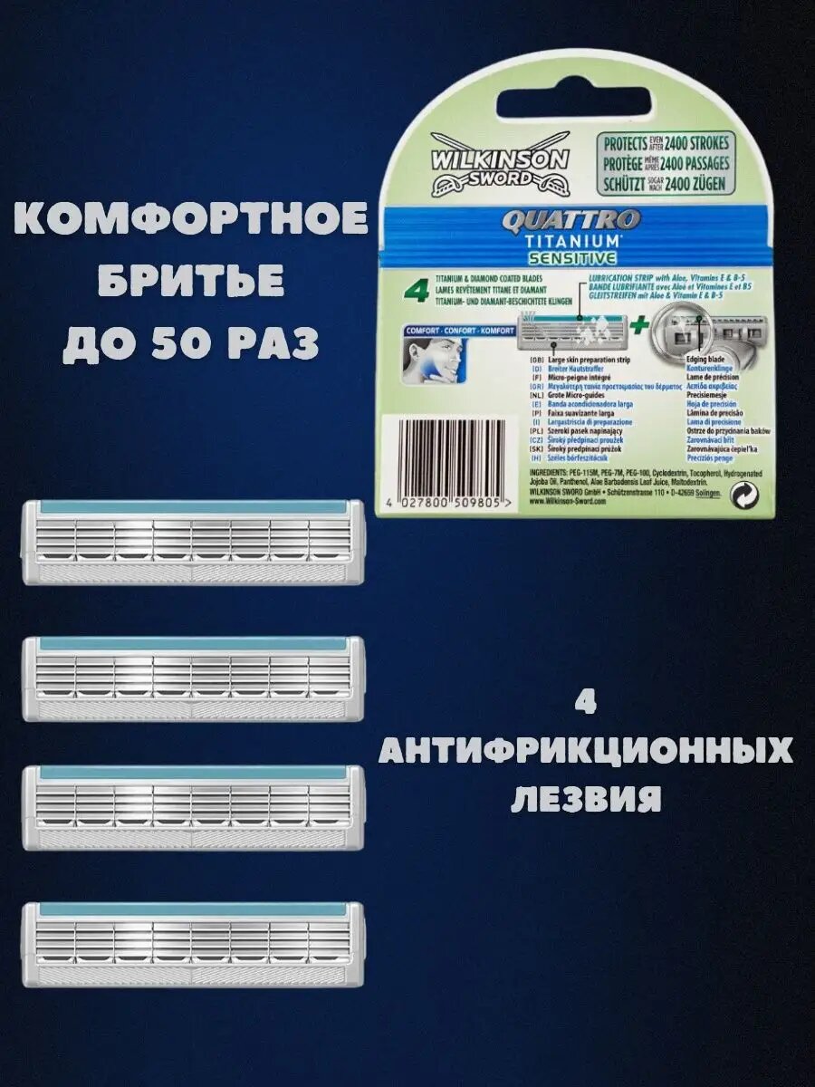 Сменные кассеты Wilkinson Sword Quattro Titanium Sensitive, 4 шт.