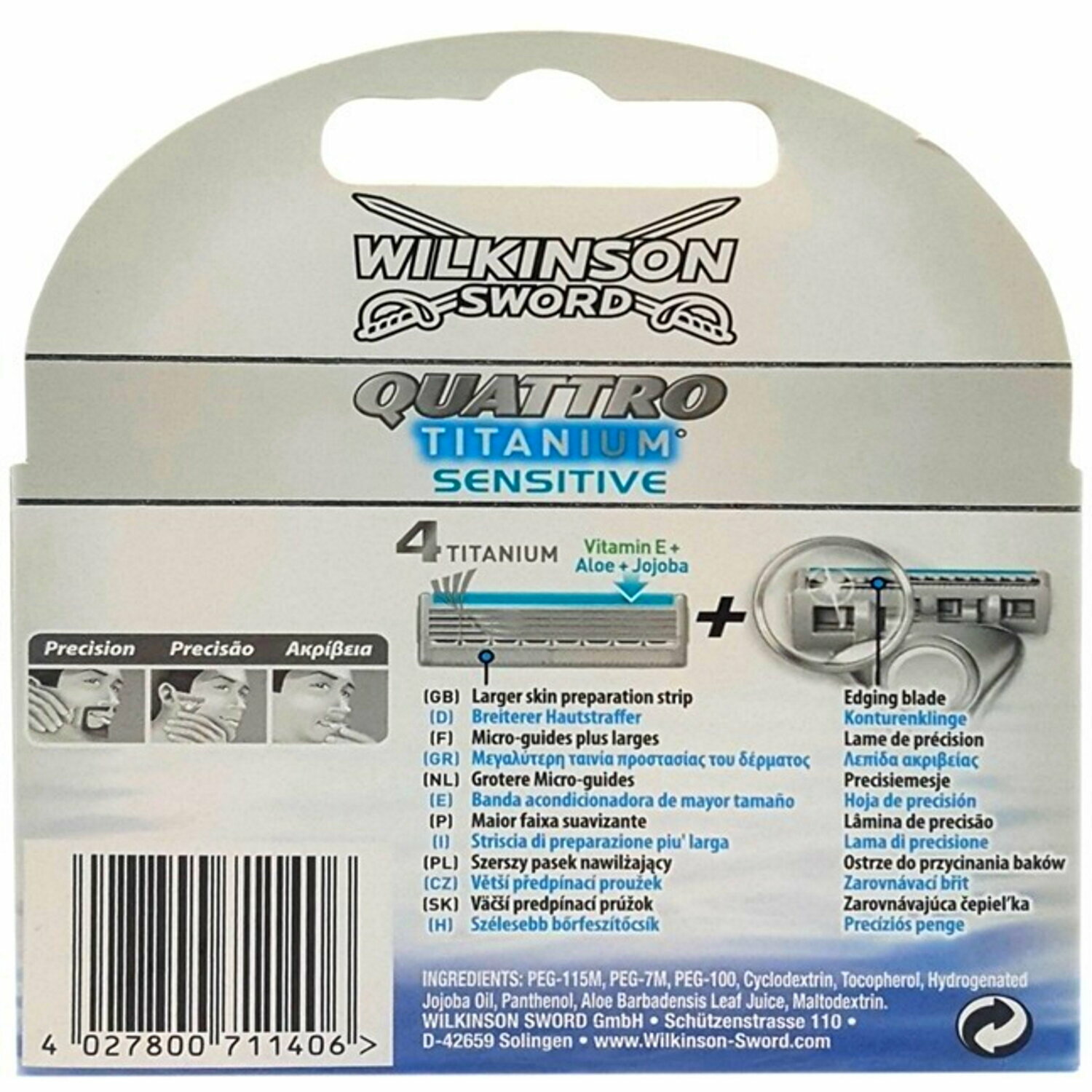 Wilkinson Sword / Schick Quattro Titanium Sensitive / Сменные кассеты для бритвы Quattro ( 5 шт)