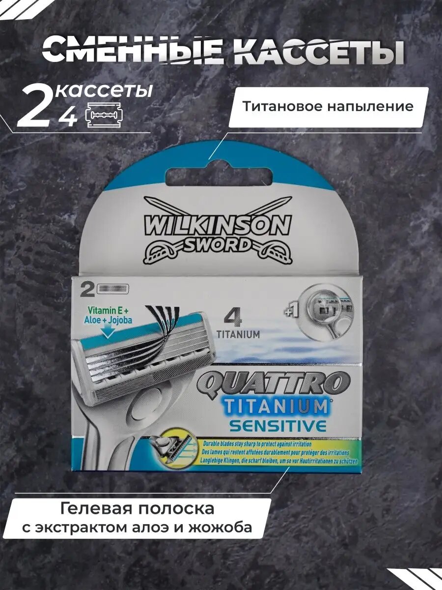 Сменные кассеты Wilkinson Sword Quattro Titanium Sensitive, 2 шт.