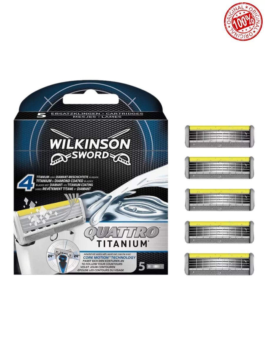 Wilkinson Sword / Schick Quattro Titanium Sensitive / Сменные кассеты для бритвы Quattro ( 5 шт)