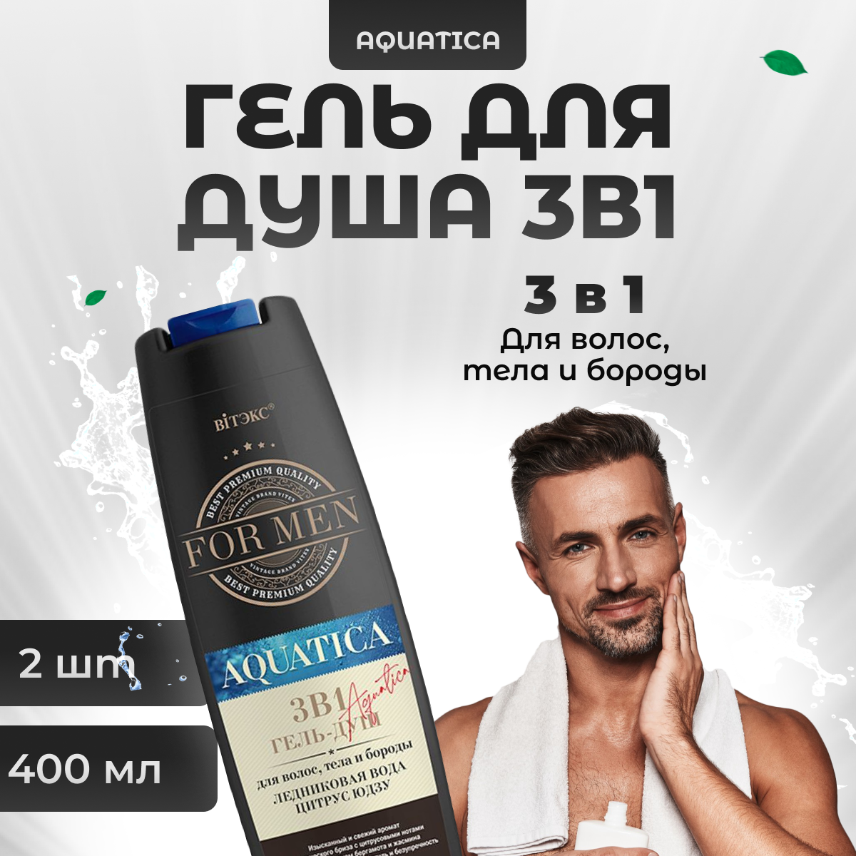 Гель для душа мужской Витэкс 3 в 1 для волос, тела и бороды мужской Ледниковая вода и цитрус юдзу 400 мл 2 шт интересное: