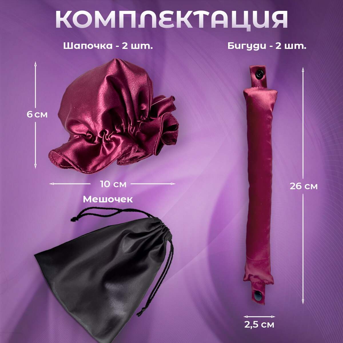 | Комплектация | В комплекте идут 2 штуки бигудей и две шапочки на бигуди, в подарок мешочек |