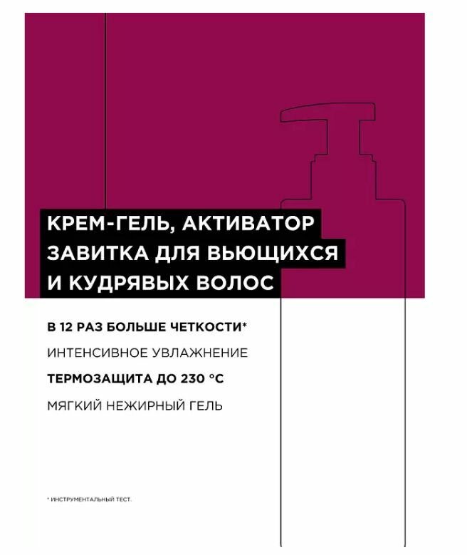 | Способ применения | Локоны: нанесите на подсушенные полотенцем волосы перед крем-муссом 10-в-1. Кудри: нанесите на подсушенные полотенцем волосы. Не смывать. Чтобы восстановить завиток после услуг разглаживания: нанесите на волосы, придайте желаемую форму . Не смывать. |