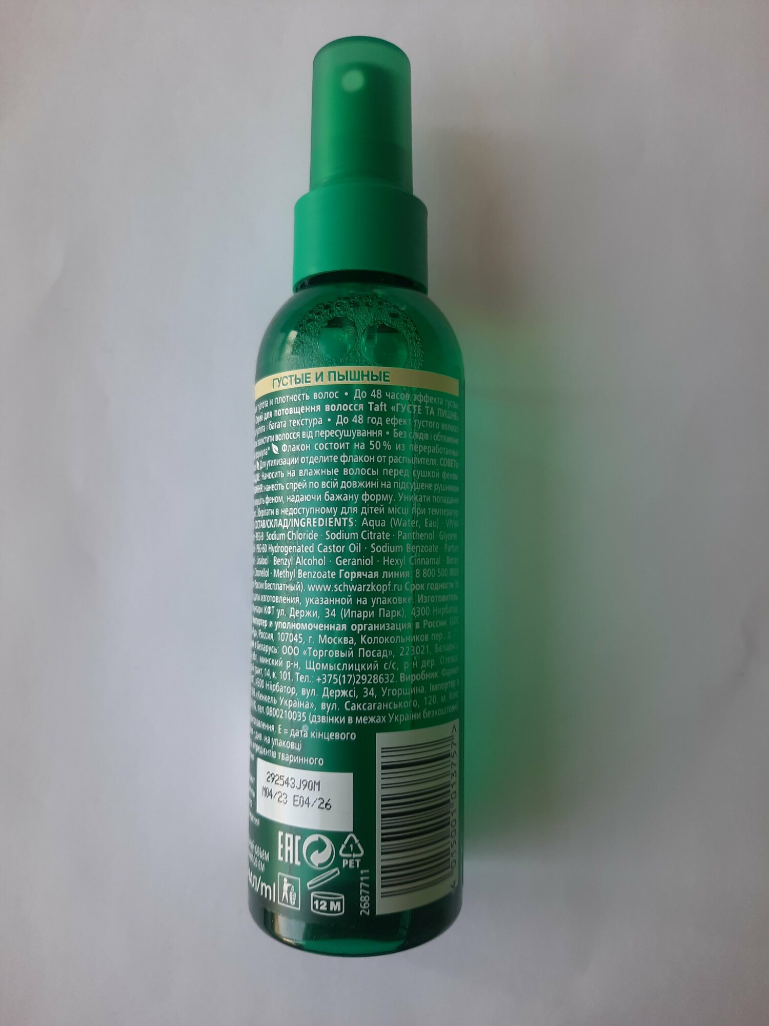 Фиксация меньше, чем я ожидала, но запах приятнее, чем у спрея, который я покупала раньше. Обычно покупаю Тафт спрей, фиксация 3 или 4. В целом, неплохой.