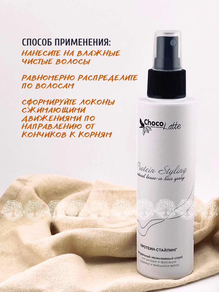 Купить Сhocolatte Протеин-стайлинг натуральный несмываемый спрей для укладки и фиксации кудрявых и вьющихся волос, 150 мл