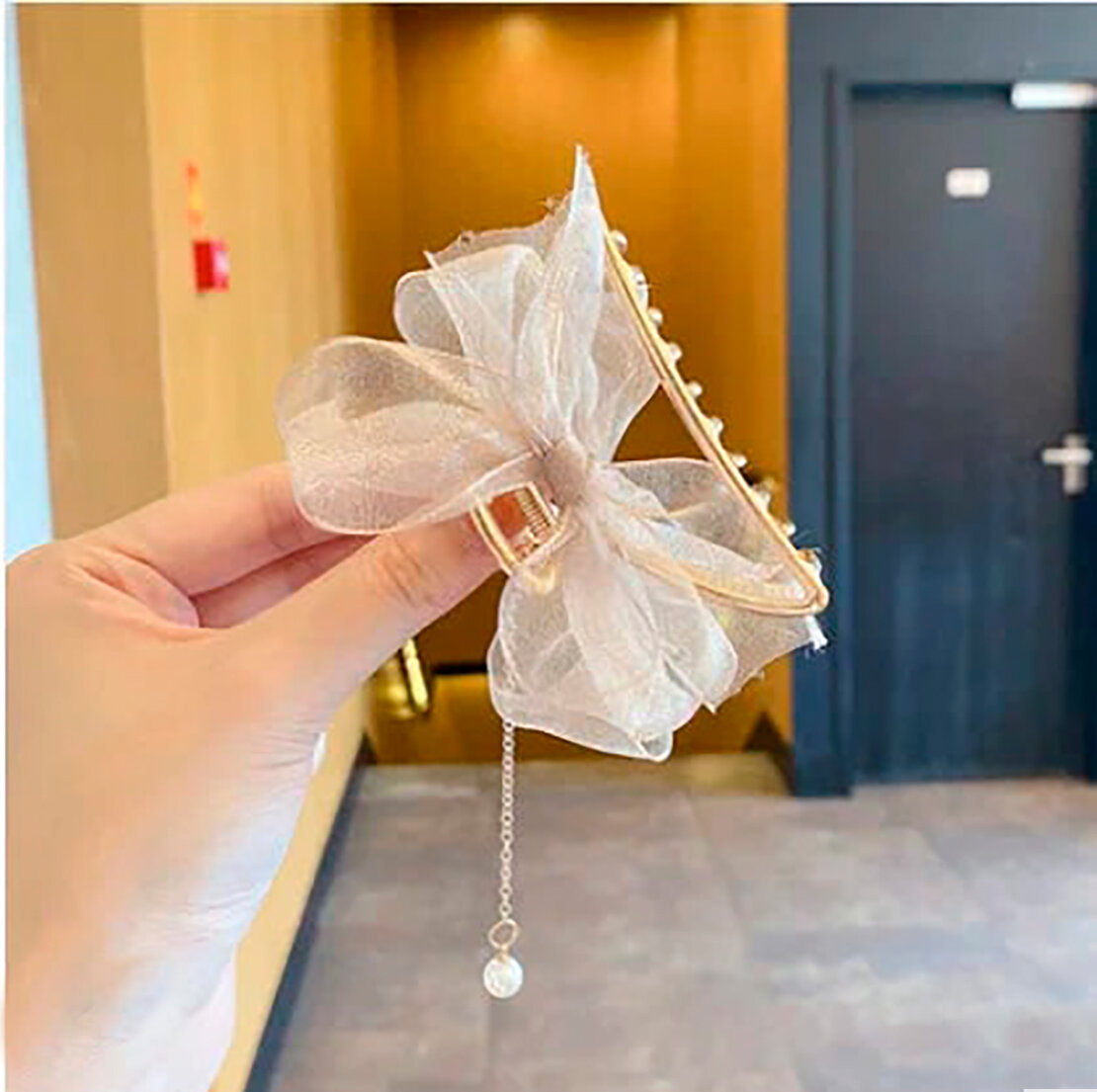 Заколка краб для волос /заколка женская/краб для волос/заколка в виде акулы/серый бант с подвеской