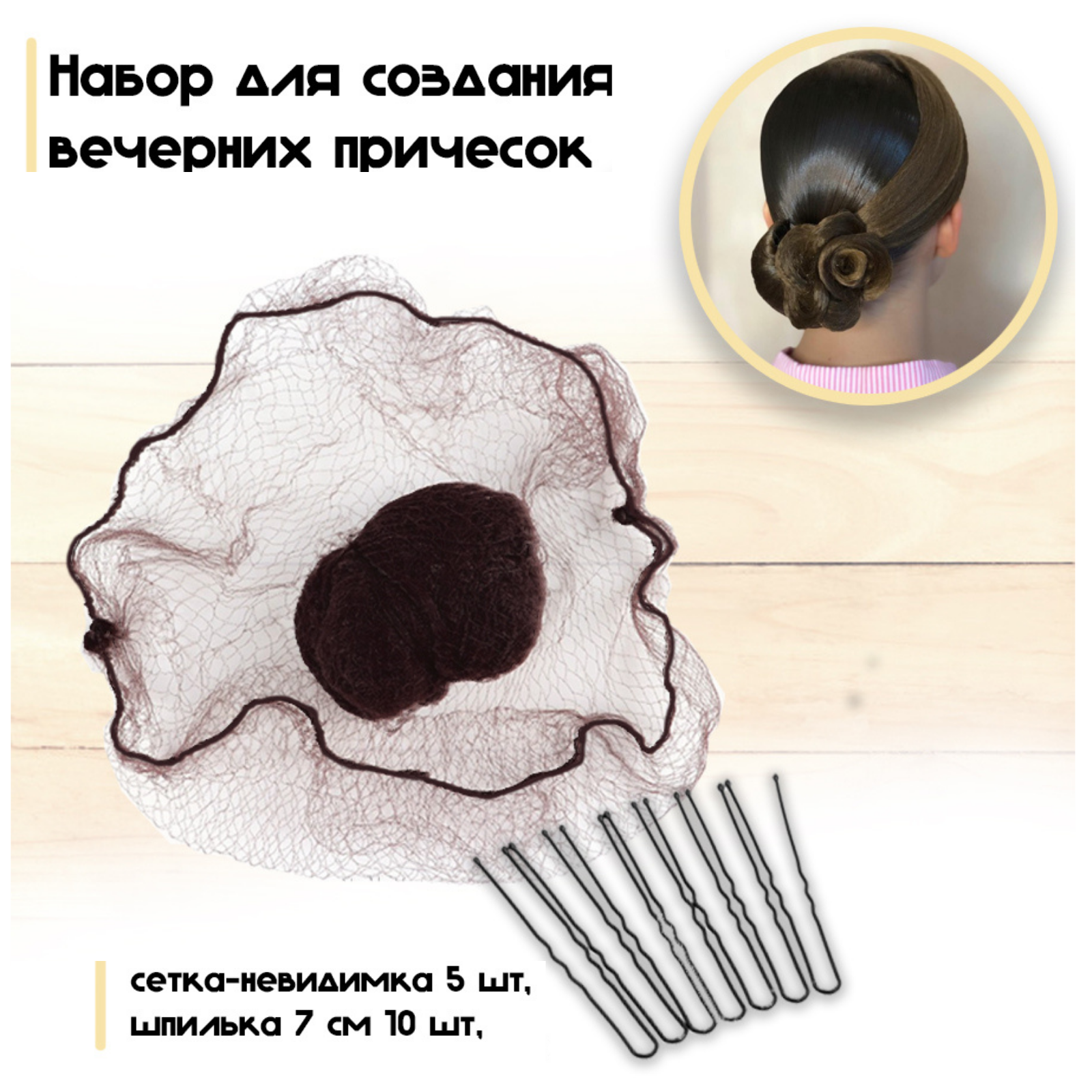СохранитьСетка невидимка для волос на пучок 5 шт, шпильки 10 шт. Набор для создания прически. Коричневая. интересное: