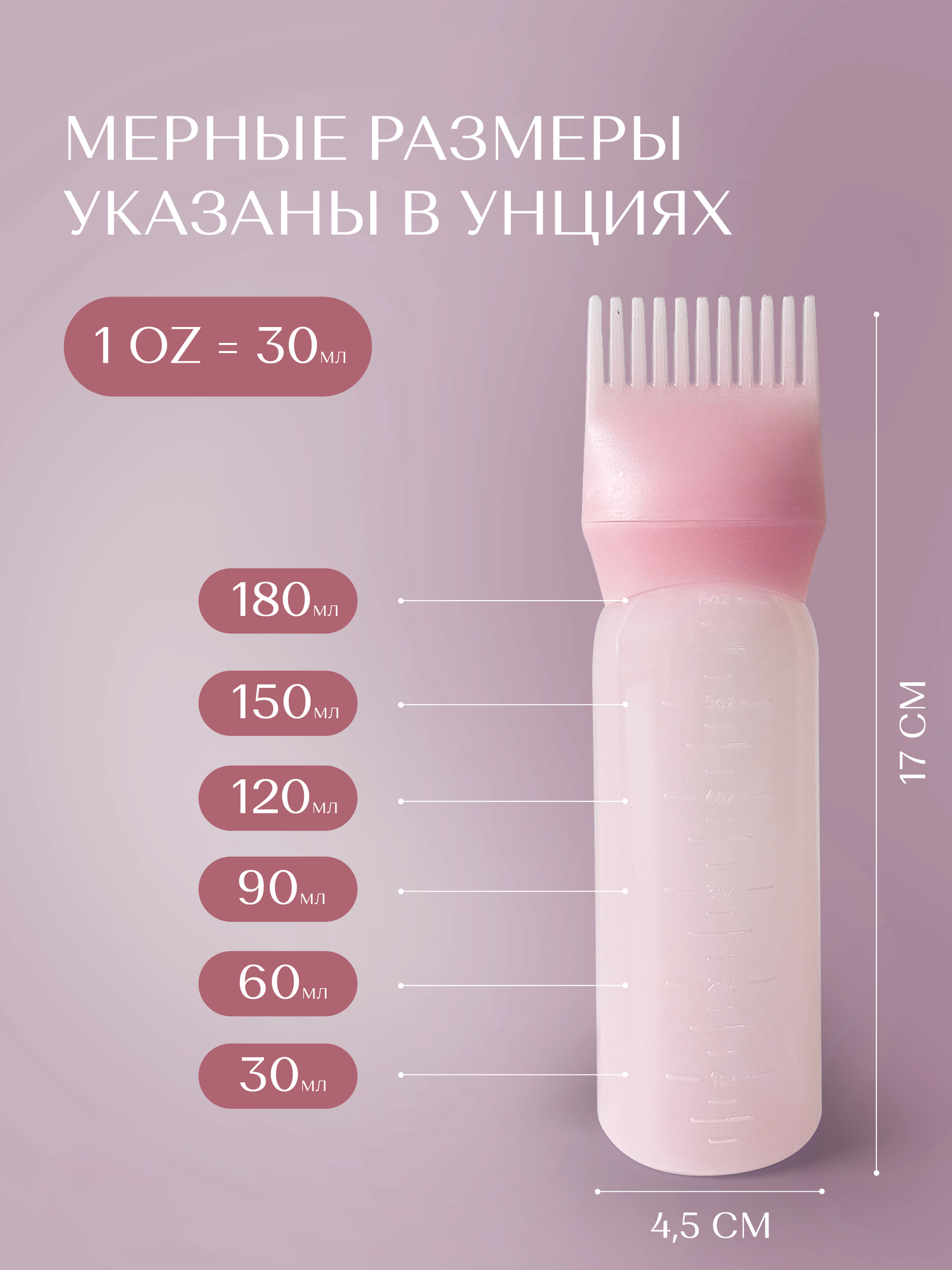 Расческа-аппликатор для окрашивания волос, масок и пилинга кожи головы, цвет розовый, 180 мл