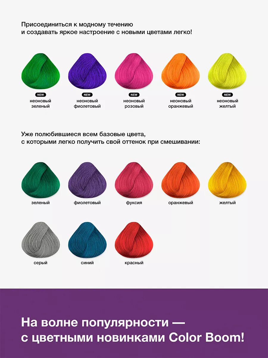 | Способ применения | используйте защитные перчатки. нанесите пигмент прямого действия на чистые, подсушенные полотенцем волосы, оставьте на 5-25 минут, смойте теплой водой. Чем дольше выдержка, тем ярче и насыщенней будет оттенок |