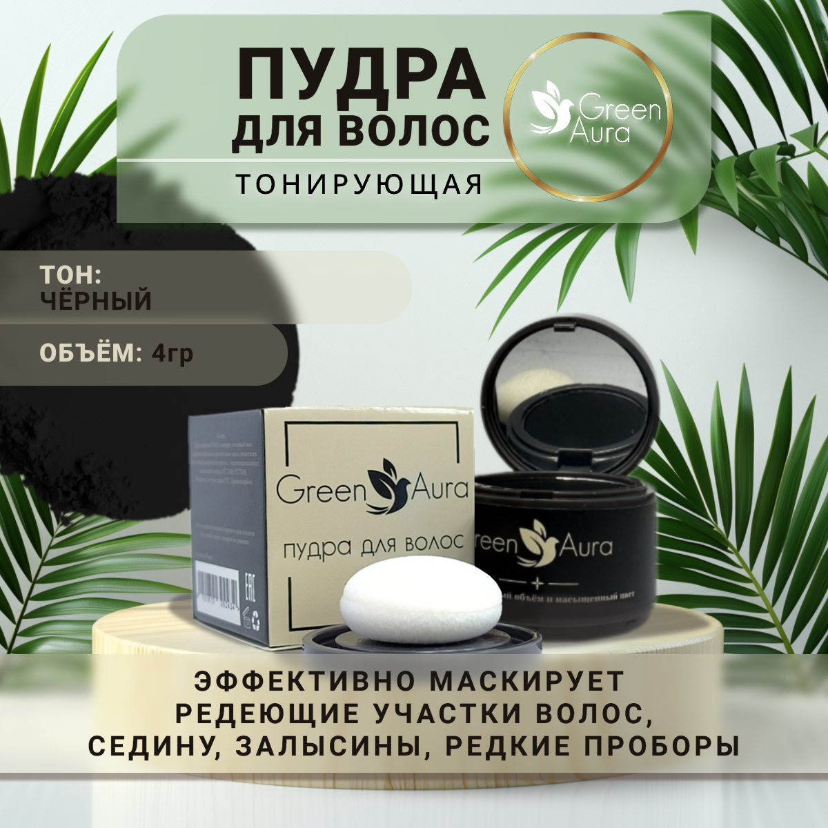 Пудра для волос "GreenAura", маскировка корней, черная, 4 гр