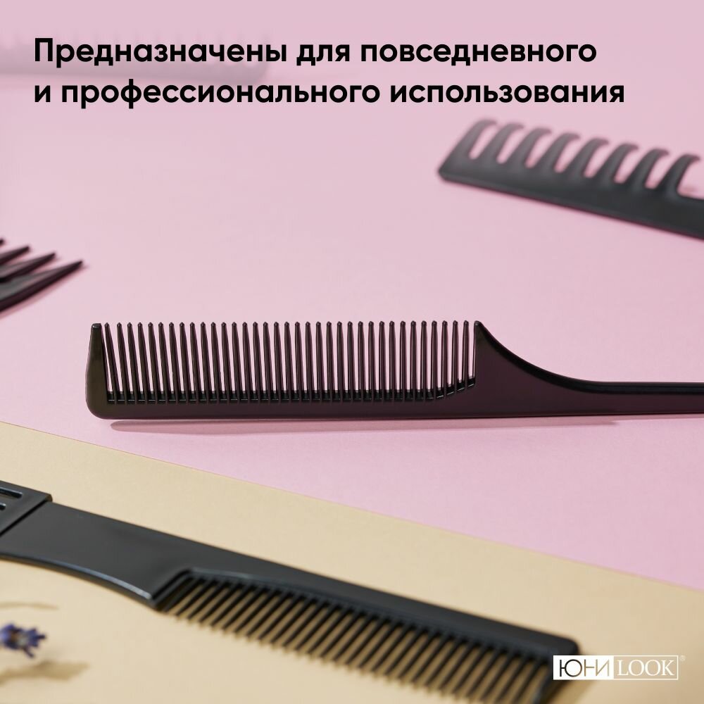 Набор профессиональных расчесок-гребней ЮниLook 10пр., пластик, черный
