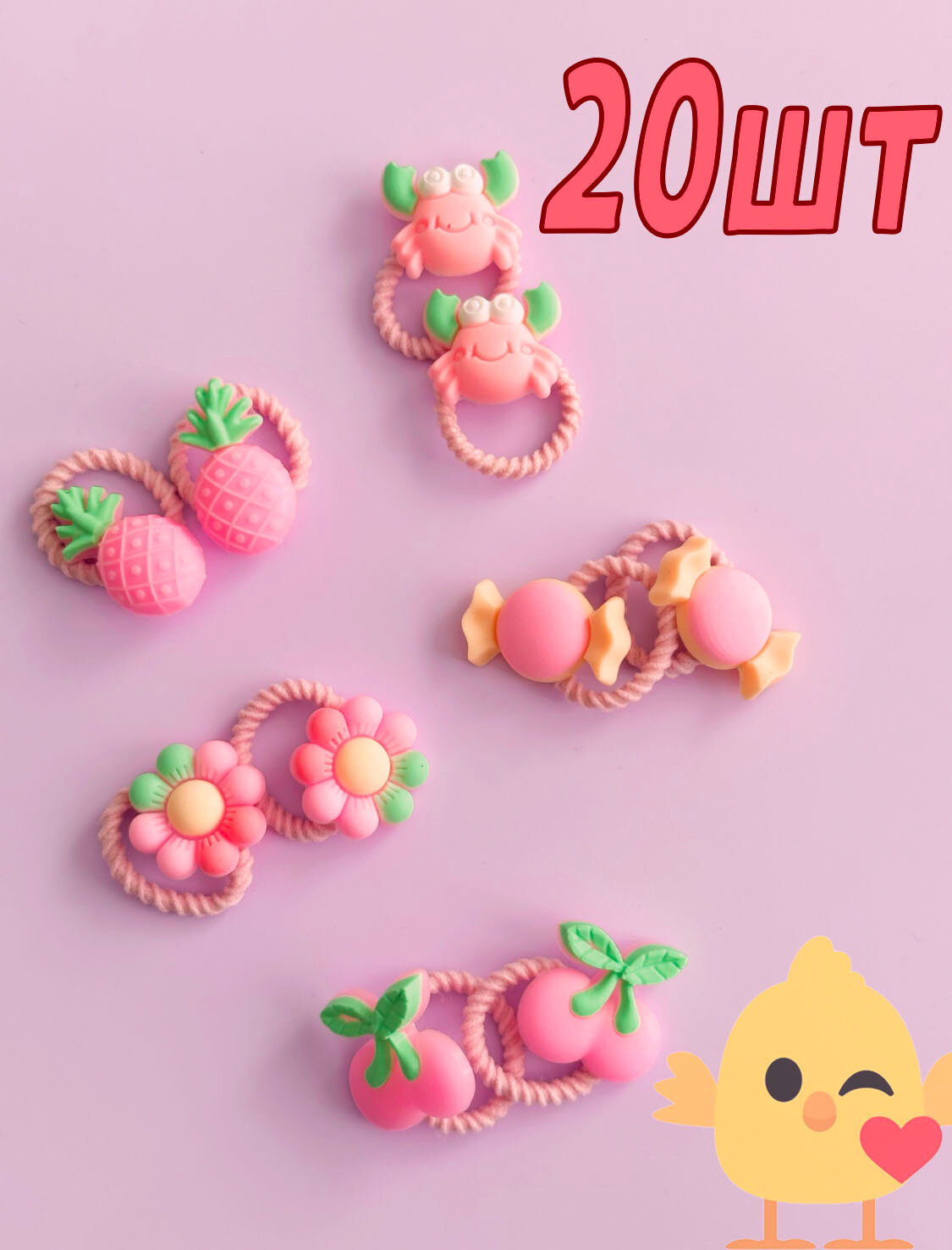 Набор резинок для волос 20 штук яркий микс