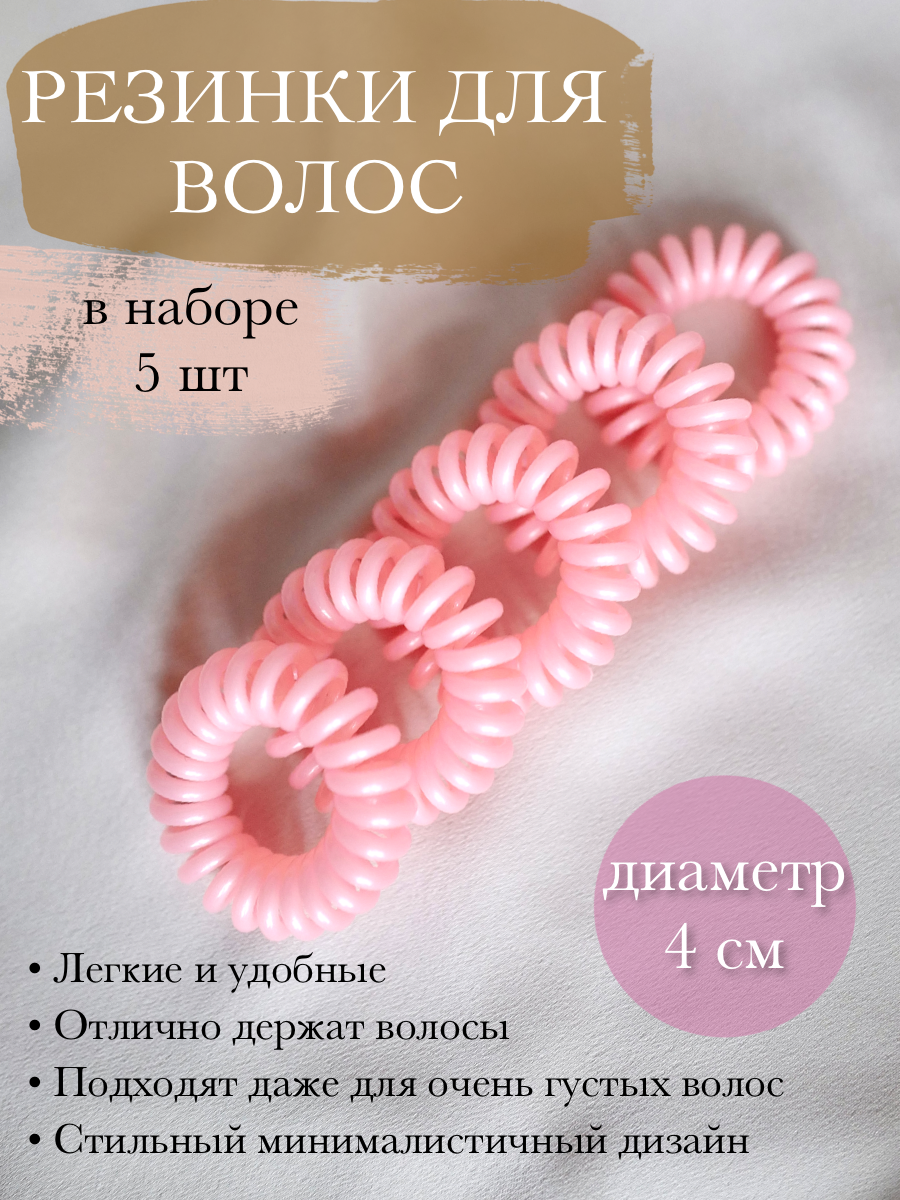 Резинки пружинки для волос силиконовые светло-коралловые 5шт. интересное: