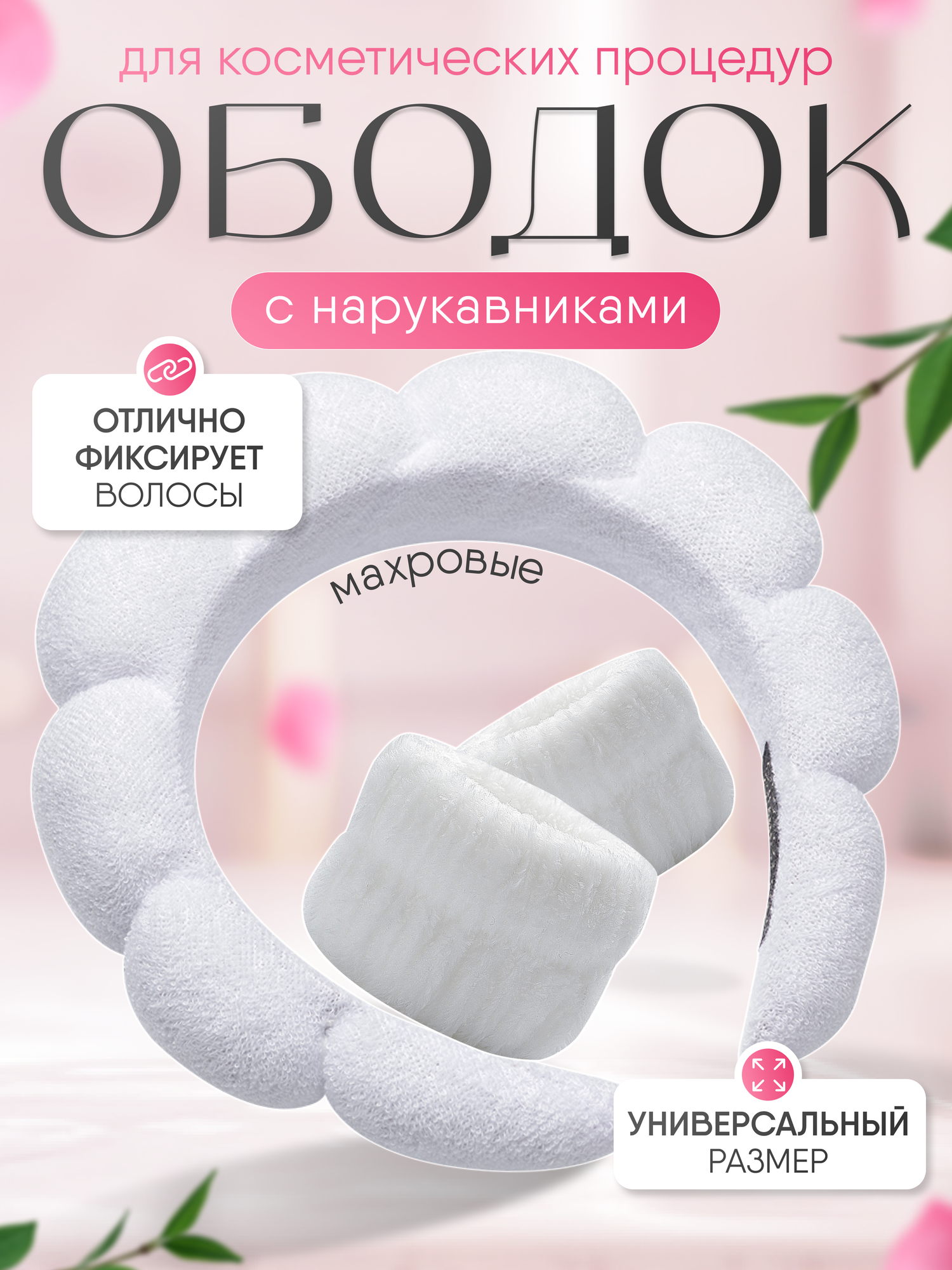 Ободок для макияжа и умывания с нарукавниками белый интересное: