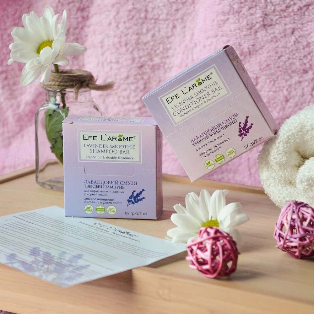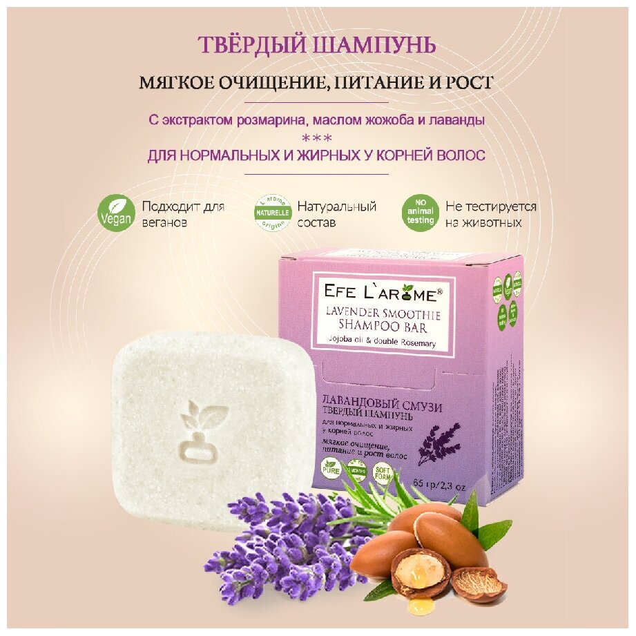 Твёрдый шампунь Efe L`arome Лавандовый смузи для нормальных и жирных у корней волос интересное: