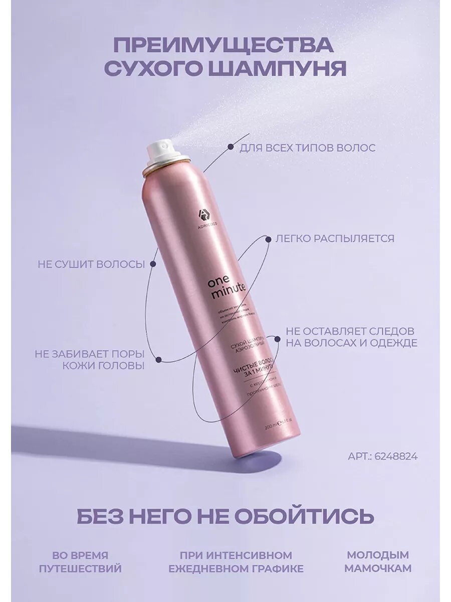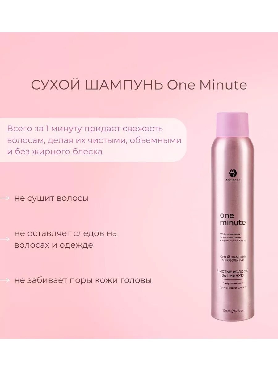 Adricoco, One Minute - сухой шампунь экспресс-очищение аэрозольный, 200 мл интересное: