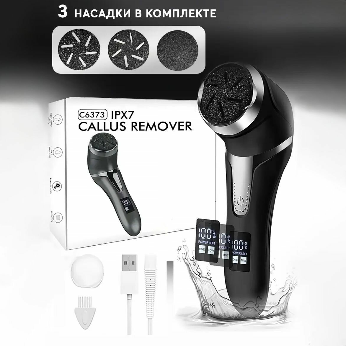 | Комплектация | Педикюрный аппарат / USB-кабель / 3 сменные насадки / щеточка / инструкция по применению на русском языке. |