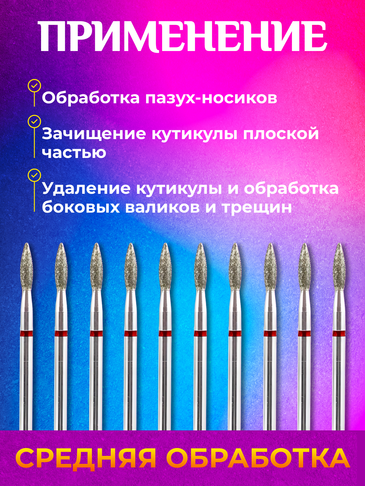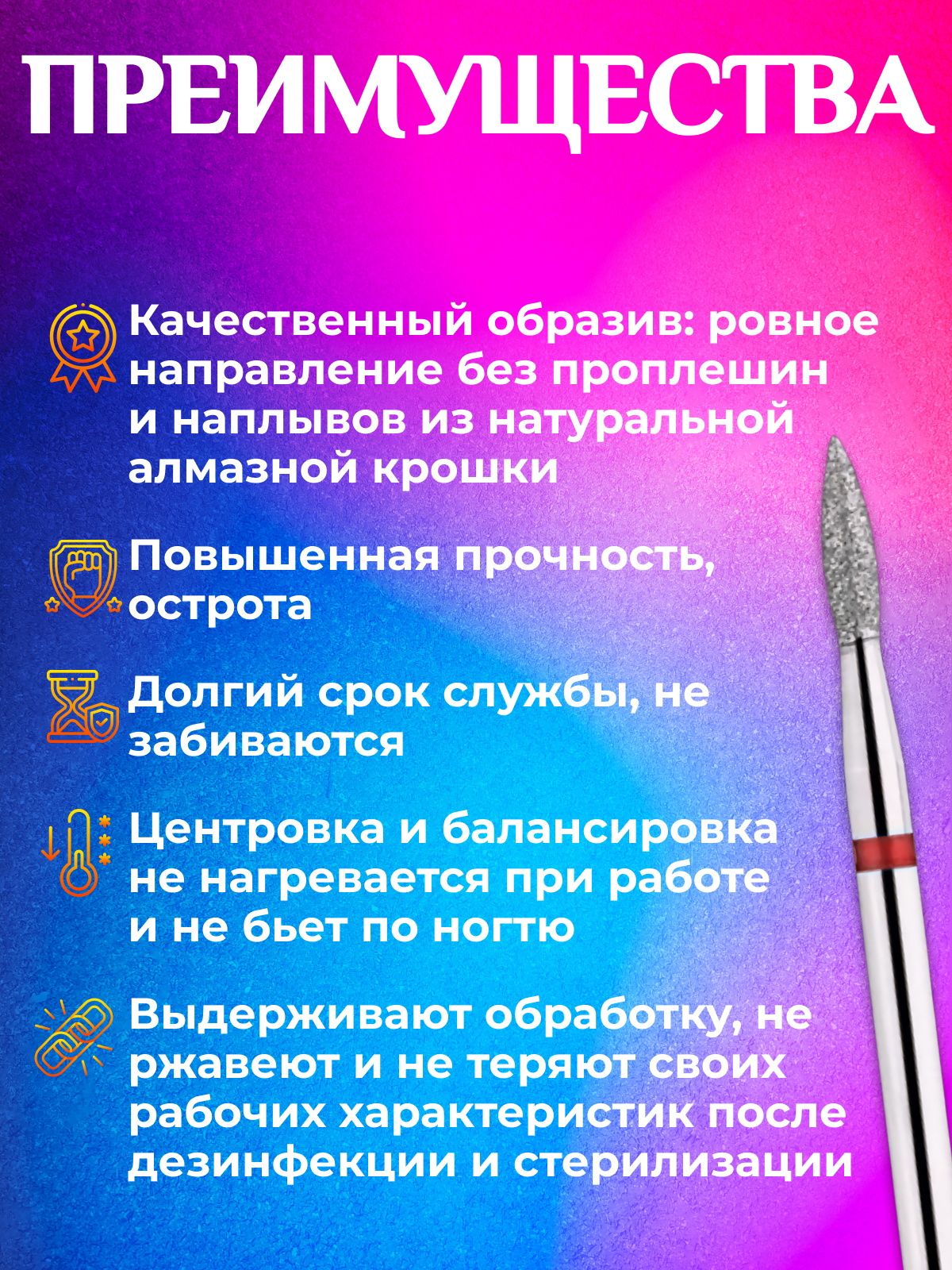 Фрезы для маникюра педикюра снятия алмазные керамика набор "пламя" 2.3 красный интересное: