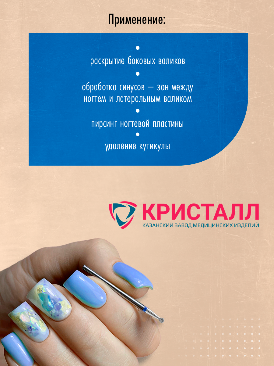 Кристалл, Алмазная фреза (шар), D2,3, L030, средняя, 866.104.001.020.023, 5 шт интересное: