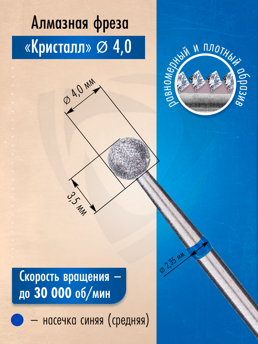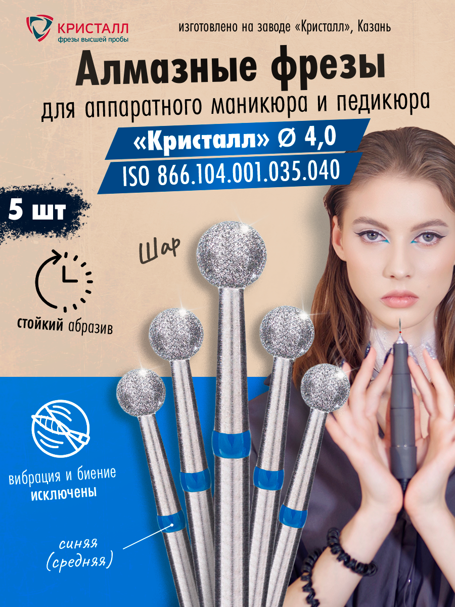 Кристалл, Алмазная фреза (шар), D4,0, L035, средняя, 866.104.001.035.040, 5 шт интересное: