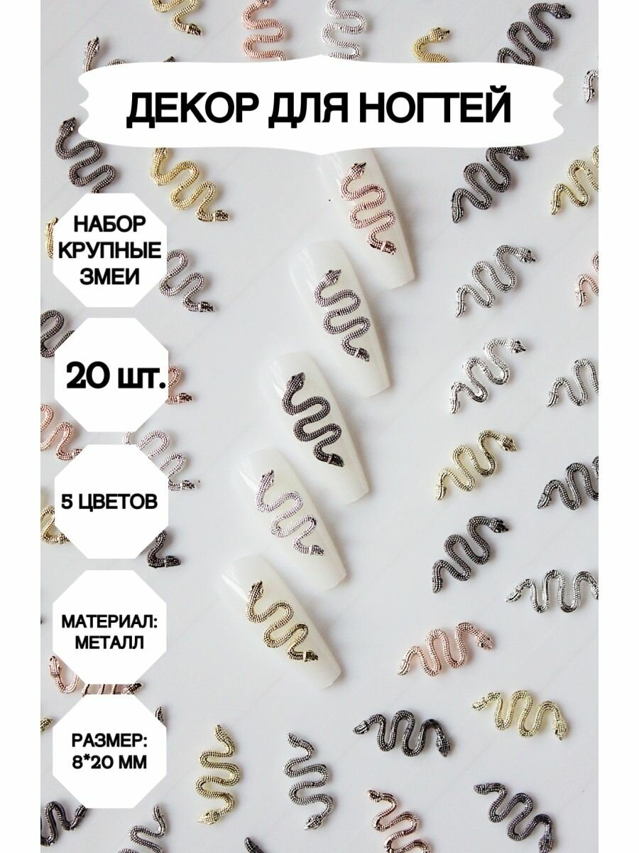 3D фигурки змеи для ногтей, фигурки змеи, Маникюр_крупные_змеи 20 штук набор фигурок
