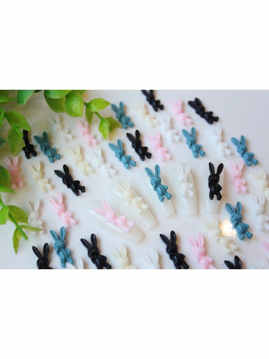Набор фигурок Market13Salnik "Маникюр_зайчики", для ногтей, розовый, акрил, 3D, 20 штук