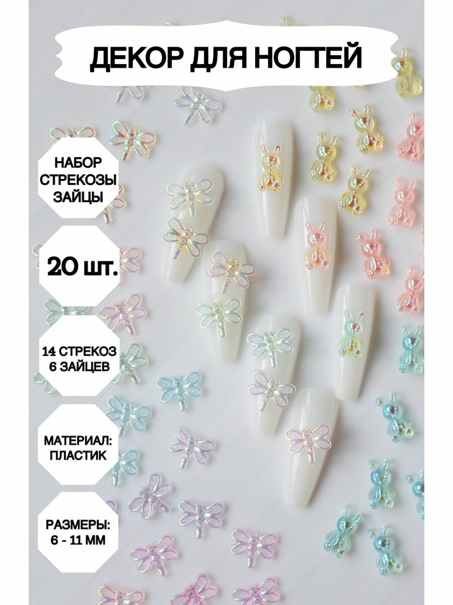 Набор фигурок для ногтей Market13Salnik "Маникюр_стрекозы_зайцы", акация, 20 штук