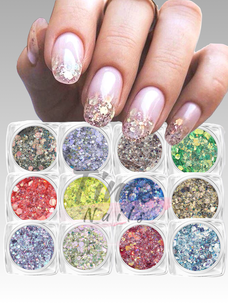 Блестки для ногтей и творчества 3D набор 12шт интересное: