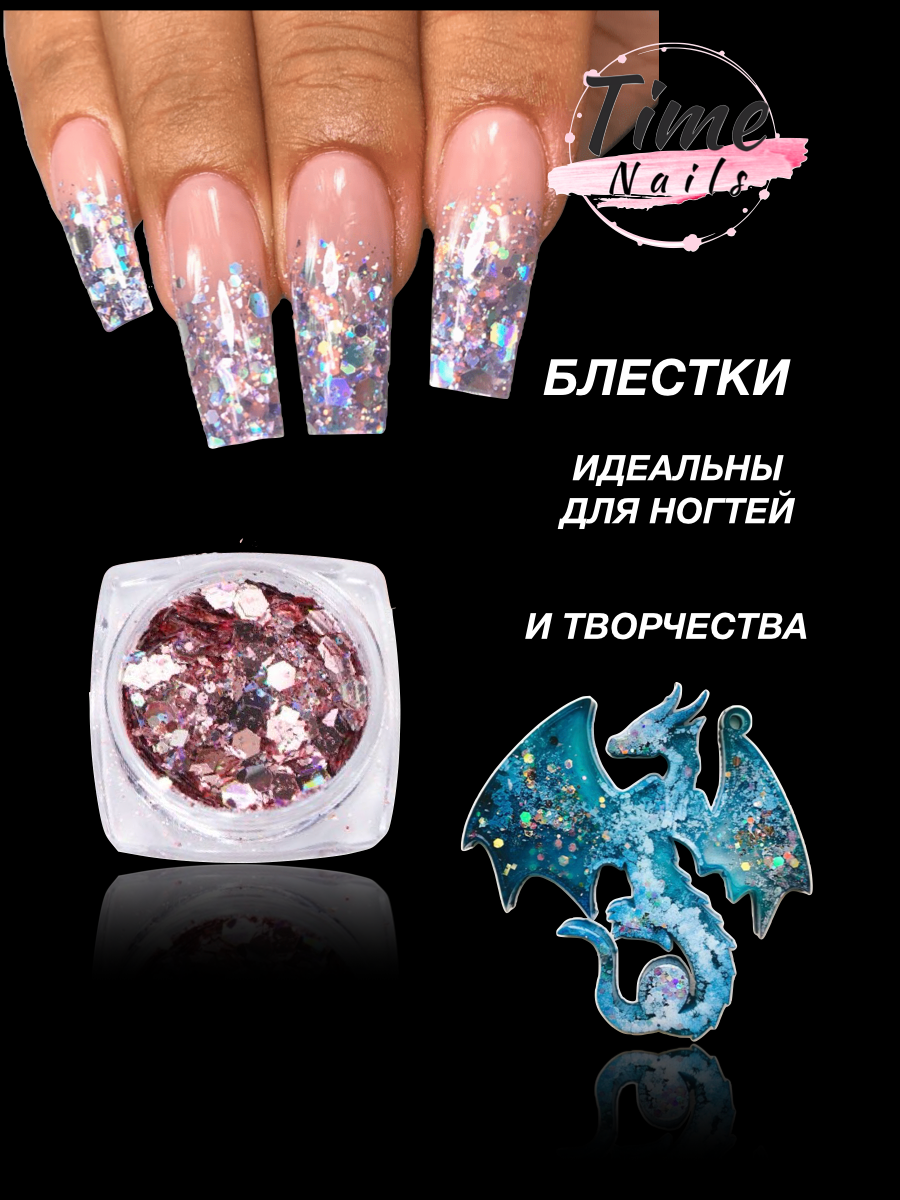 | Дополнительная информация | блестки среднего помола, используется при создании дизайна для маникюра, подходит для творчества и эпоксидной смолы |