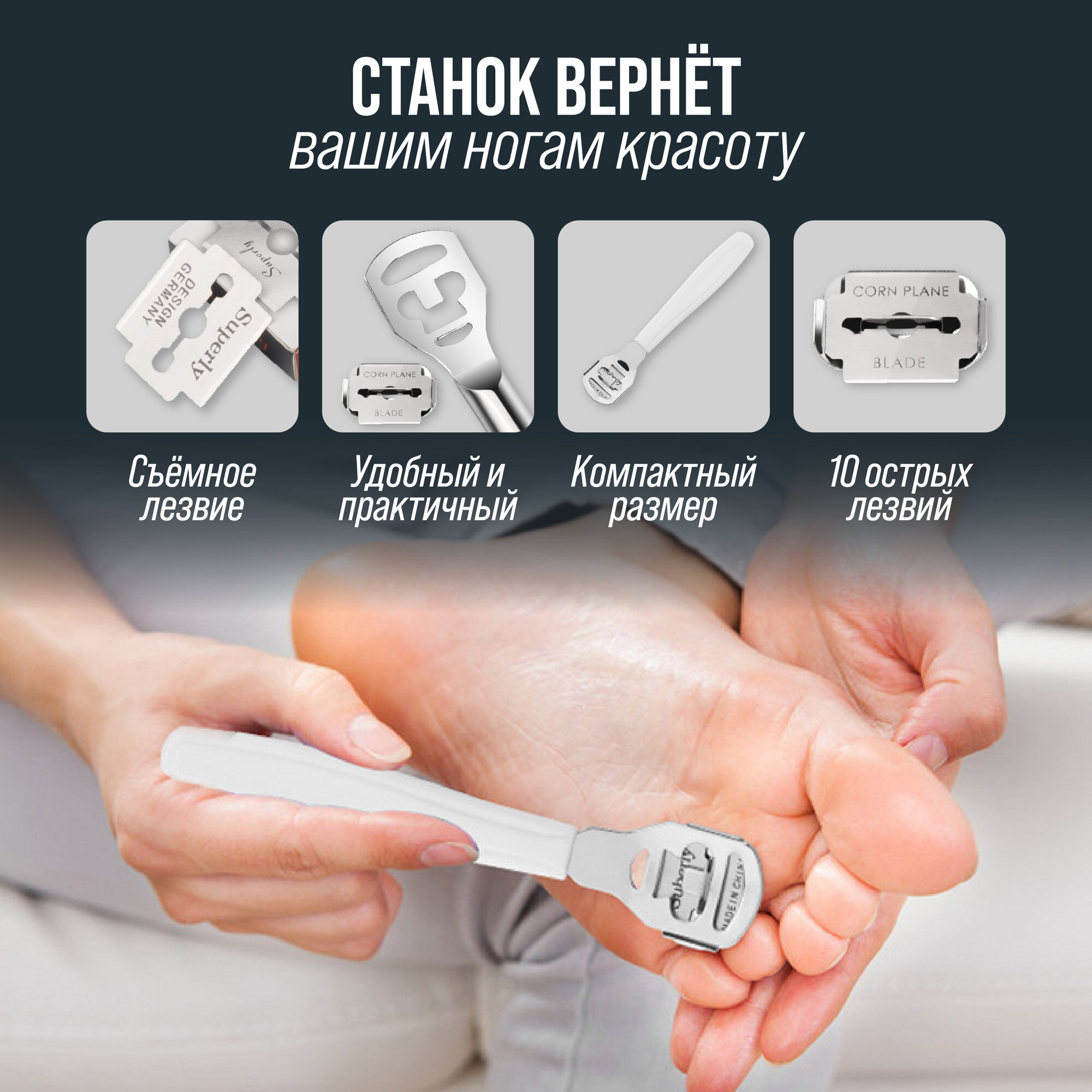 Станок для педикюра с комплектом 10 лезвий, скребок для пяток интересное: