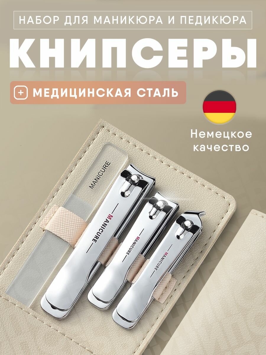Маникюрный набор подарочный 3 в 1 кусачки для ногтей и пилка, бежевый интересное: