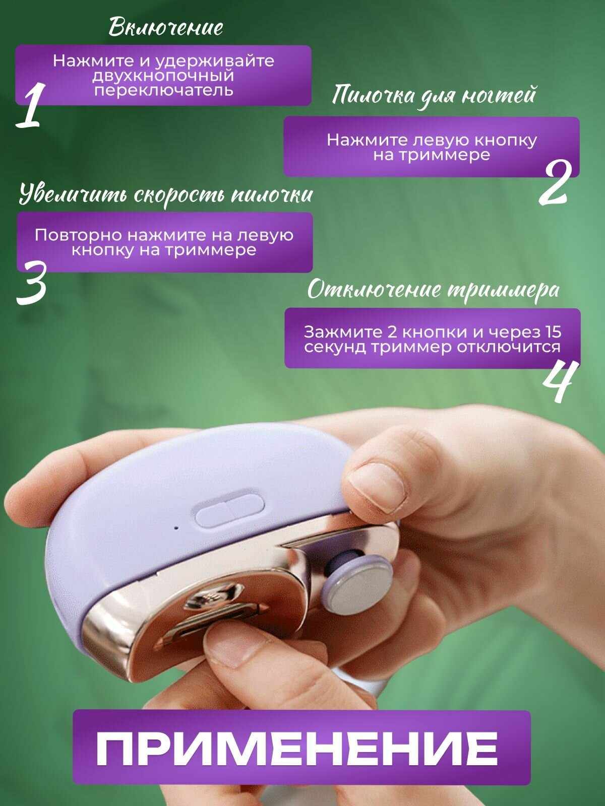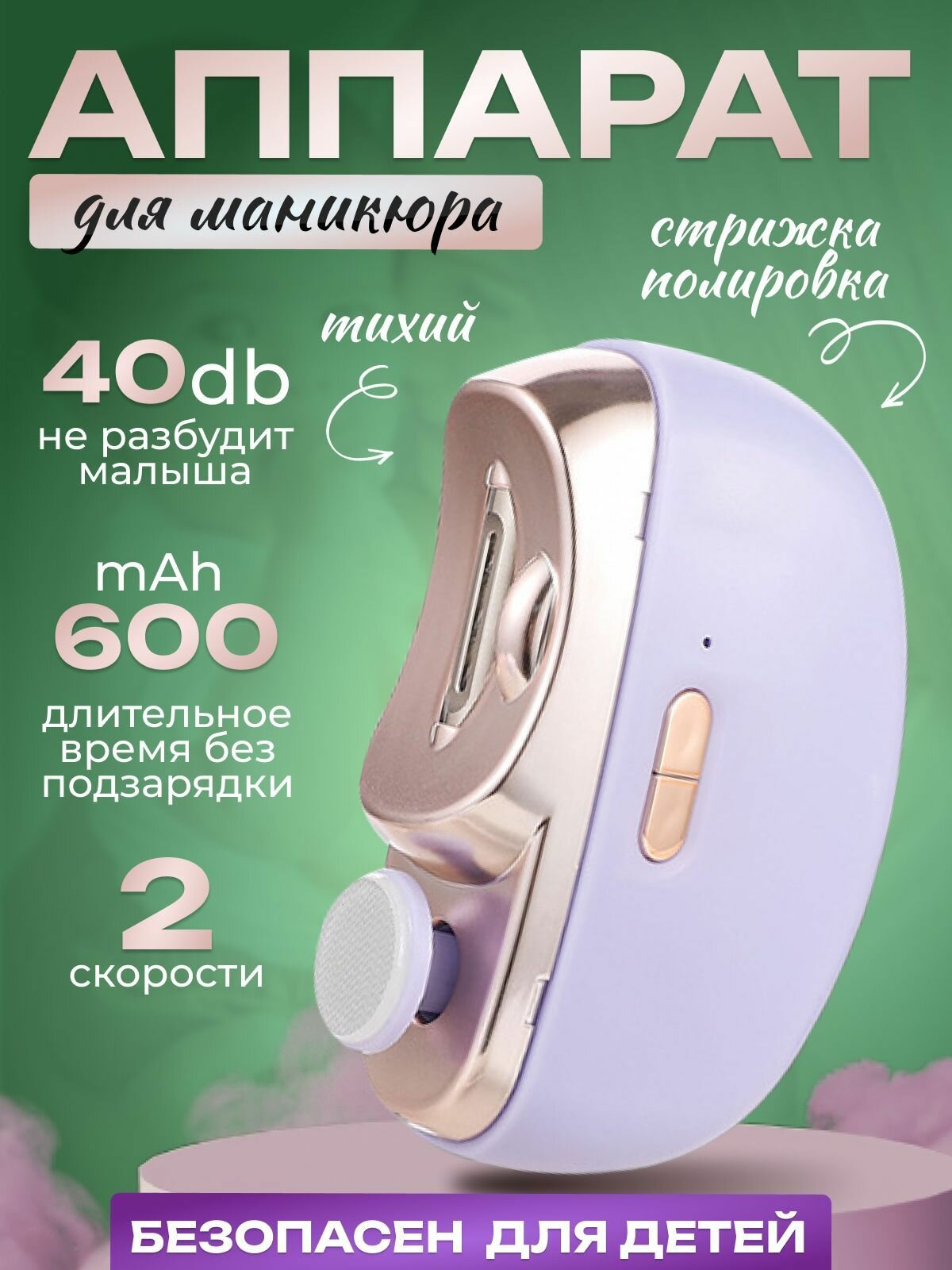 Мощный и безопасный триммер для ногтей/ Электронные ножницы для быстрого и аккуратного маникюра/ Маникюрные ножницы для детей и взрослых/Маникюрный аппарат для ногтей фиолетового цвета/Аппарат для стрижки полировки ногтей.
