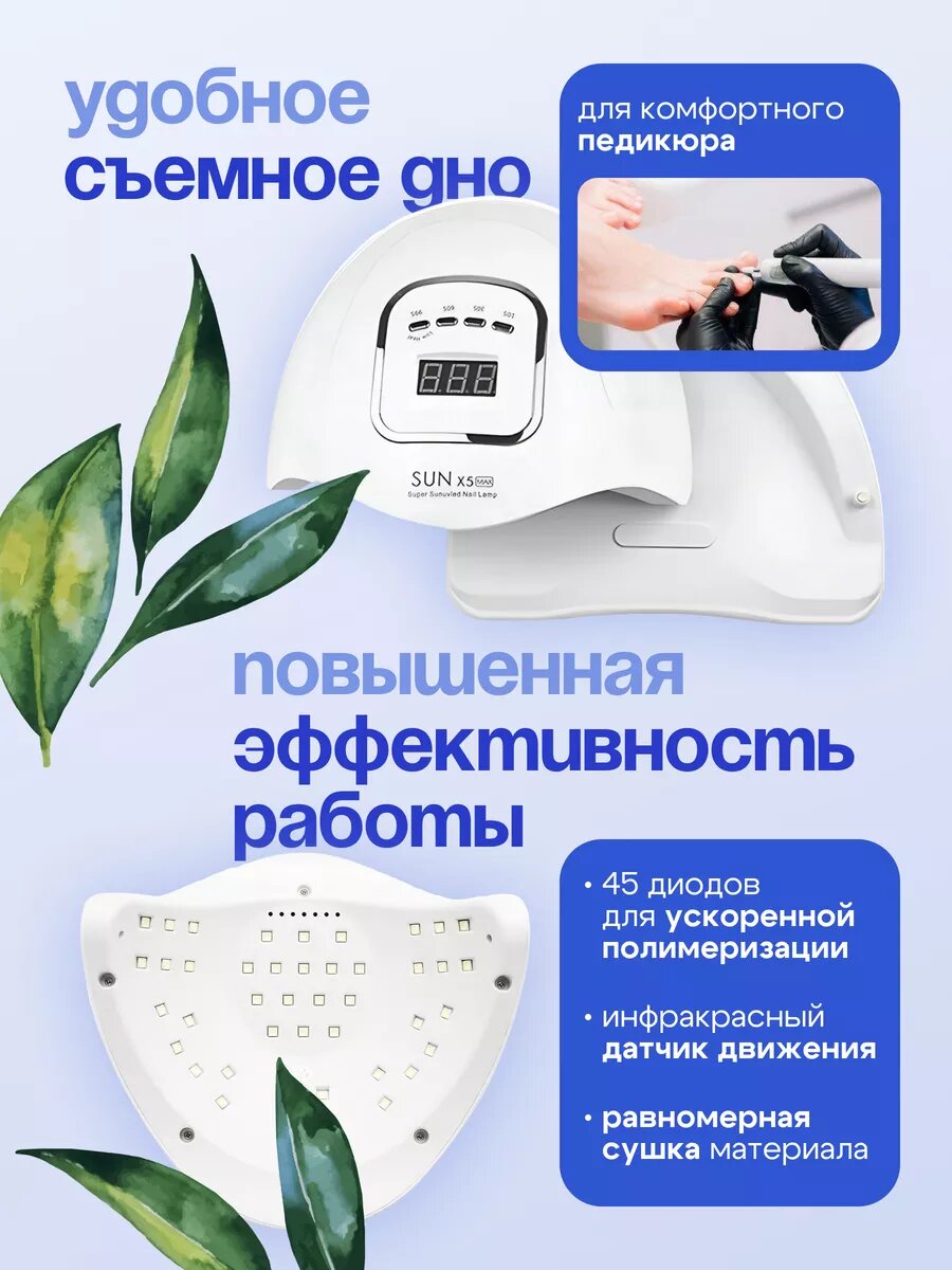 SUN Лампа для сушки ногтей X, 54 Вт, LED-UV белый + Пилочки для маникюра 10 шт / Набор для маникюра Лампа + пилочки для ногтей